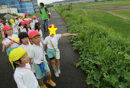 松河戸グラウンドまでしっかりお兄さん、お姉さんと手を繋いで行くことができたね![]()