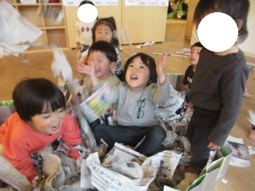 たくさんの新聞に埋もれたり、舞ったりして楽しそうに遊んでいましたよ