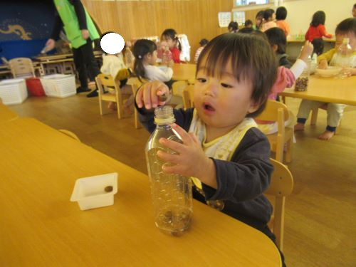 カップやペットボトルにひたすら入れて遊んでいました
