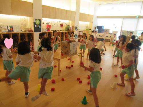 うさぎ・ぱんだ・きりんぐみさんはお部屋の中でダンスをしたり、玉入れをしたりして過ごしました😌💖
