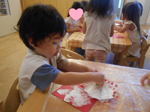 朝から「今日はハートのスタンプ押すよ~!」と言っていたので