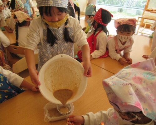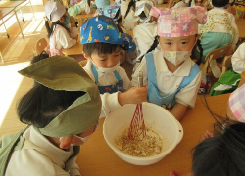 粉が溶けるまで、よーくかき混ぜて😀 みんなで順番に、たくさんかき混ぜます。
