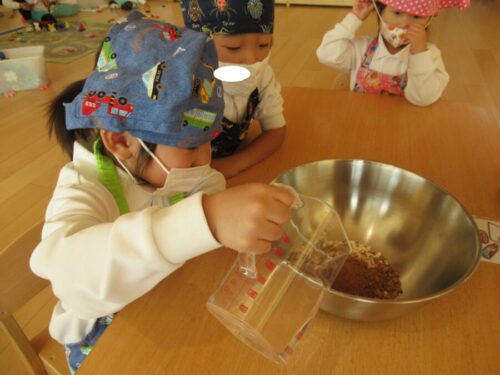 「どんな味かなぁ」「美味しいといいよねー」 出来上がる間に、お話が弾みます🤗