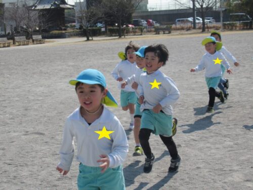 きりんさんは、3月の卒園マラソンに向けて道風公園でコースを走りました。