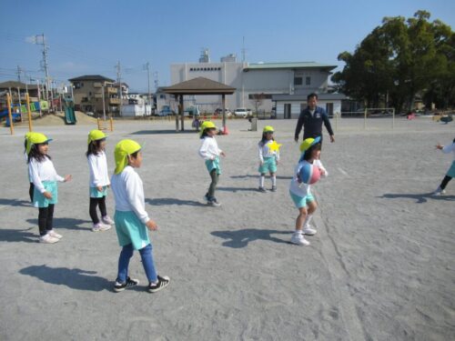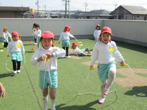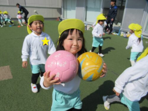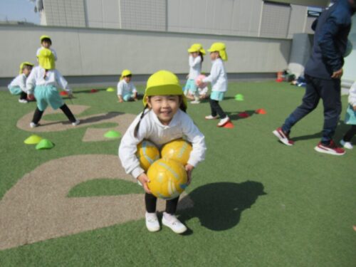 屋上はぽかぽか、気持ちのいい天気の中で、たくさん身体を動かしました。