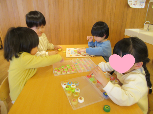 パズルを黙々とやる子どもたち😠
