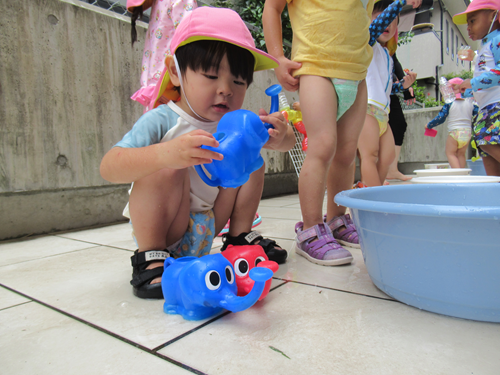 大胆にコップから水を流して楽しんでいました!
