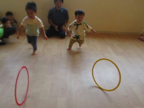 みんなでたのしく身体を動かしたり、競争したりとお部屋中に賑やかな笑い声が響いていて、子どもたちの「たのしい!」が伝わってきました😆✨