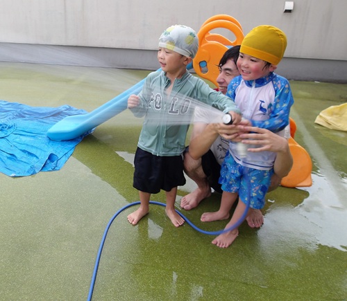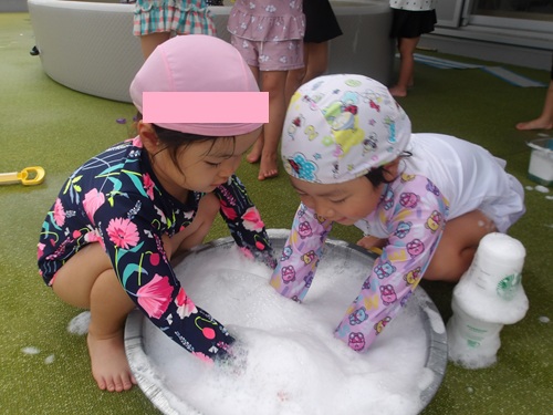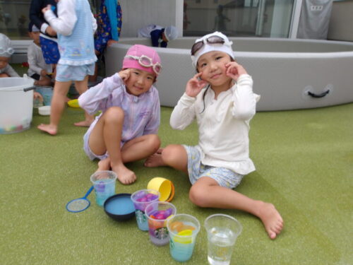 思いっきりバタ足をしてお友だちと水の掛け合いっこ💦✨