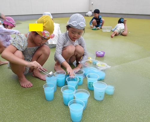 色水でジュース屋さんごっこを楽しんでいる様子もありました🍹