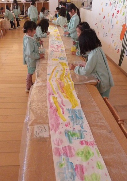 輪繋ぎの飾りをお友だちと協力して根気よく作ってくれました🤗