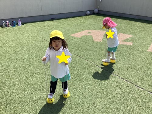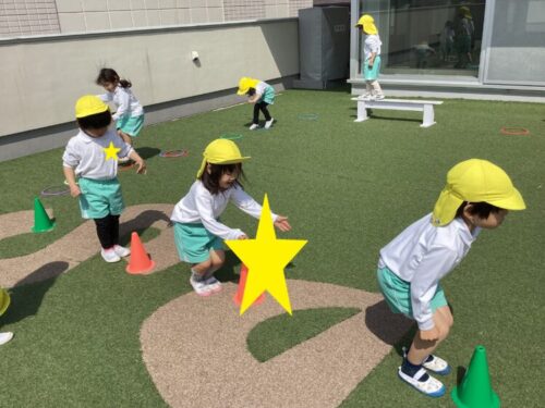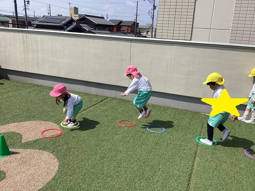 屋上園庭や段下公園で遊びましたが、異年齢同士声をかけあって楽しそうに遊んでいる様子がありました😊✨