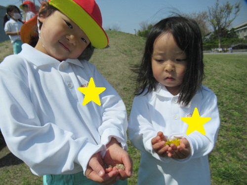 桜の花びらがひらひらと屋上園庭に舞ってきました🌸