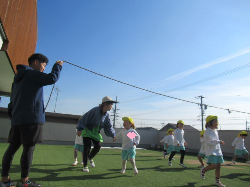 ながーい大繩の下をくぐって走ったり、大繩の上をうさぎさんのようにぴょんぴょんジャンプで跳ねて走ったりして身体をいっぱい動かして楽しみましたよ😊💖