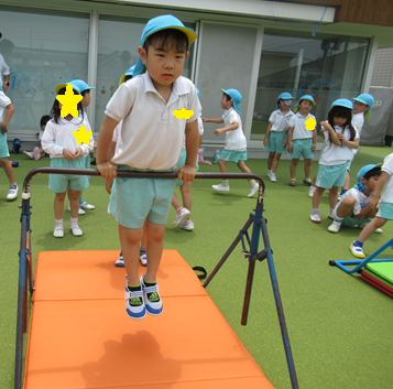 きりん組さんになると先生の補助なしでスムーズに前回りをすることができていました![]()