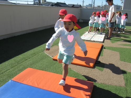 うさぎ組さんは体操教室が始まる前に園庭で遊びました🐷