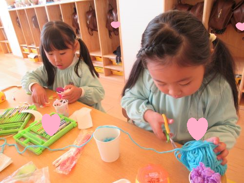 ながーい毛糸でなにをつくっているんでしょう???