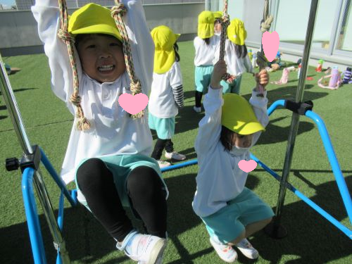 何秒ぶら下がっていられるかなー??と耐久レースでは「がんばれー!!」とお友だちを応援する姿も見られましたよ😆💖