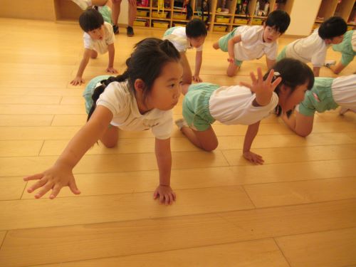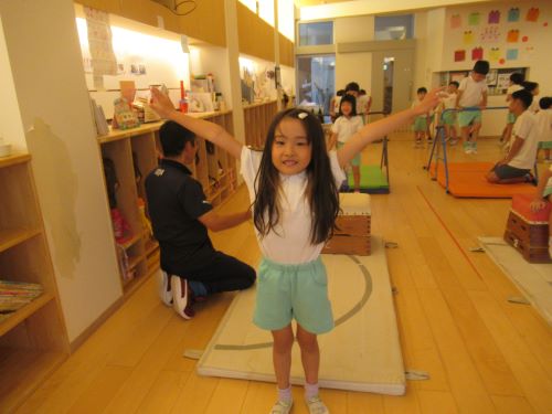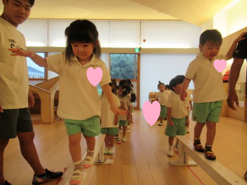 きりんぐみさんは体操教室の先生の真似をしてバランスゲームを楽しみましたよ😊💕