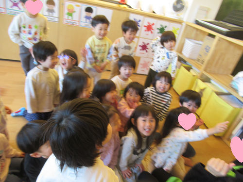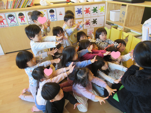 これは絵本のイラストの真似をみんなでしているところなのですが