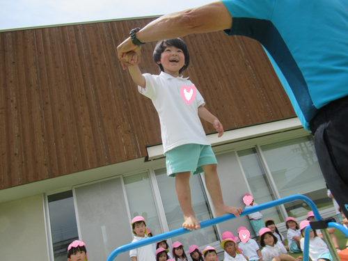 きりん組さんは鉄棒の上から顔を出してぶら下がりました!