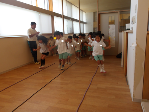 皆が跳び終わった後の縄をみて、真っすぐなままかどうかを確認!