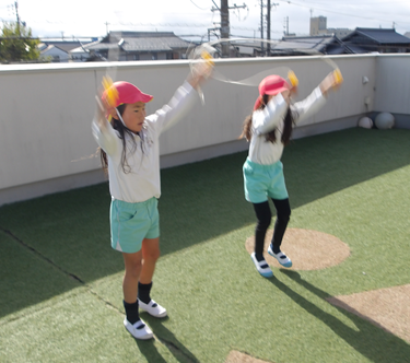 短縄跳びで前跳び、後ろ跳びができるようになり何度も楽しんでいました💖