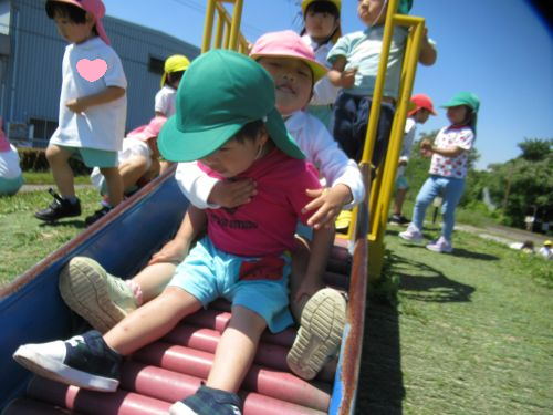 すべり台もちいさい組のお友だちと一緒に滑ってあげたりして仲良く過ごす姿が見られましたよ😄✨