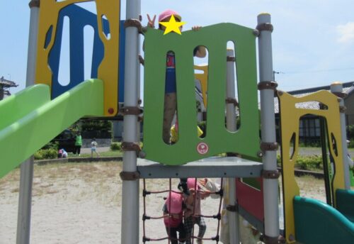 滑り台の上から先生たちを見つけると「やっほー!!」とよく手を振っていますよ😍