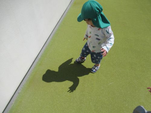 地面に自分の影が映っていて、影の形が面白いことに気付いてじっと見ていたお友だち🌟