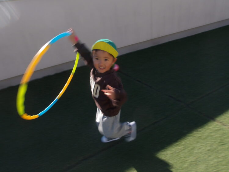 フラフープ遊びも楽しい!クルクル回して遊んだり、中に入って電車ごっこしたりして楽しんでいましたよ🌟