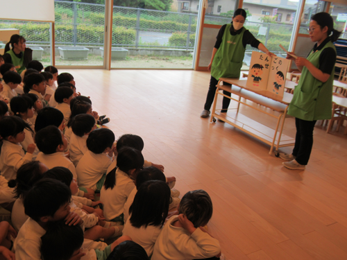 「子どもの日てなあに?」とみんな興味津々でどんな日なのか先生のお話を聞いてくれました✨