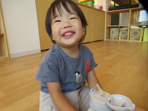 朝の水分補給の時間です❣今日もあいにくの雨☔ですが子どもたちは元気いっぱい😆