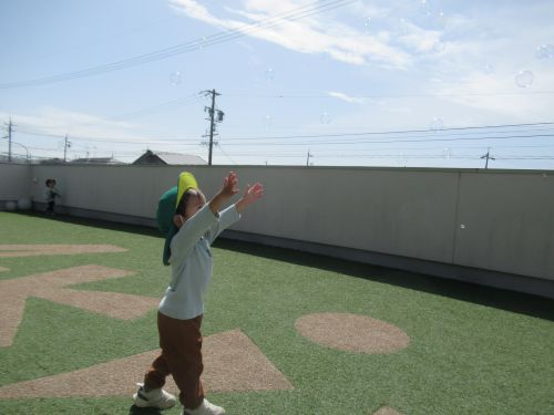 シャボン玉を飛ばすと「待て待てーー!!」と一生懸命追いかけるお友だち😄