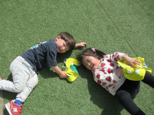 追いかけっこ疲れたからちょっと休憩ーと仲良く芝生に寝転んで日向ぼっこも楽しんでいましたよ🌟
