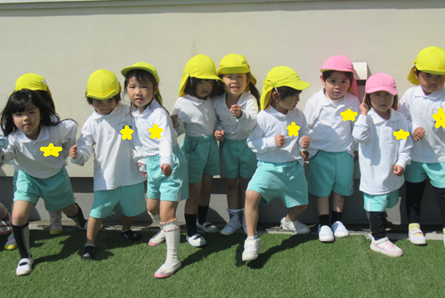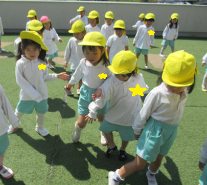お友だちにぶつからないように両手を広げ「1,2,3,4…」の掛け声に合わせ「5,6,7,8…」と大きな声で返すお友だちもいましたよ🎵