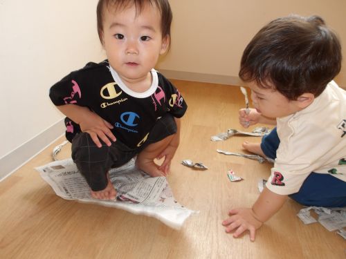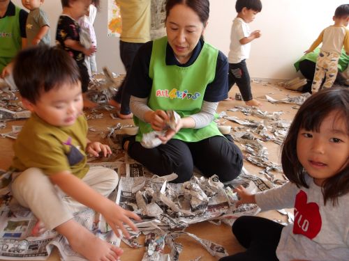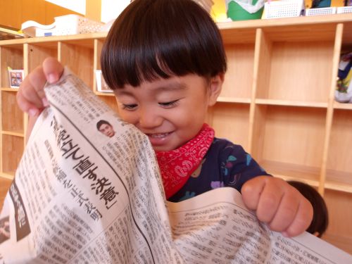 今日はお部屋の中で新聞紙遊びをして過ごしました🌟