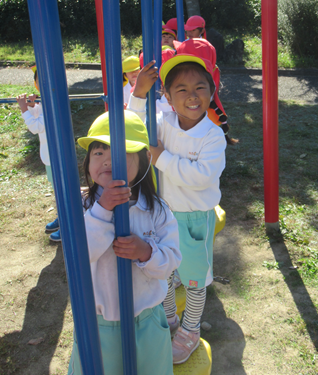 「せんせい ヤッホー」と遠くにいる先生が応えてくれると嬉しかったのか笑顔が溢れていましたよ😊💖