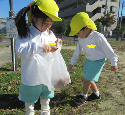 昨日に引き続き木の実や葉っぱを採って「製作に使うんだ~」とたくさん集めていましたよ😊💖