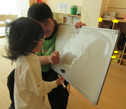 先生とアルファベットの書き順をマスターしていましたよ✨