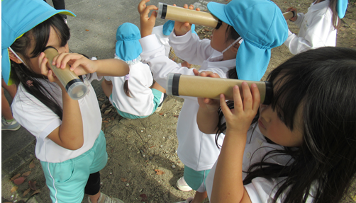様々な自然物を試し、友だちとお互いの万華鏡をのぞき合いながら、身近な自然に改めて目を向けるきっかけになりました😊