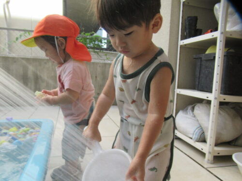 今日も朝から暑かったですね💦 元気な子どもたちは、お水でたくさん遊びました😄