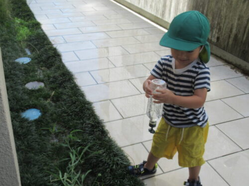 ペットボトルシャワー、上手にできるかな・・・?