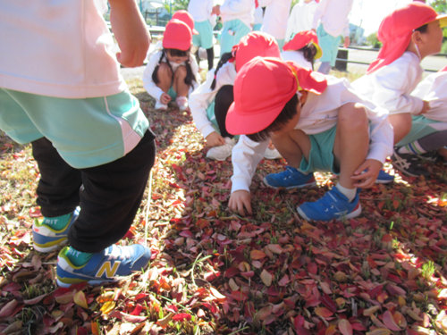 「きれいな葉っぱみつけたよ!!」「大きいのを見つけた!!」とおともだちと話しながらたくさん見つけていましたよ😍