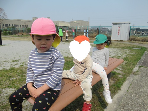 お友だちと一緒にベンチでゆったりと過ごしていました😊