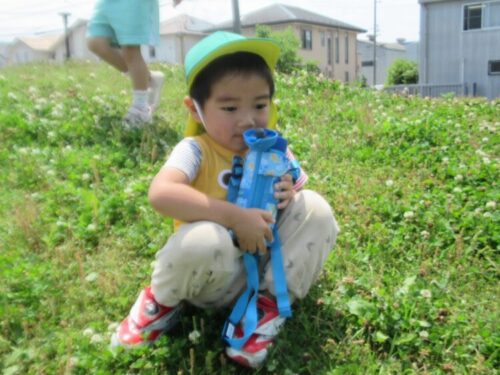 昨日の雨がまだ残っていて水たまりがたくさんあったため、遊具は使えませんでしたが、走ったりお友だちとかくれんぼをしたり、楽しい時間を過ごしました🎵
