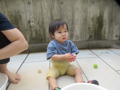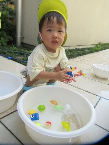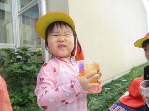 こちらのお友だちは桶の中にフルーツをたくさん入れてまぜまぜしてフルーツジュースをつくっているお友だちもいました✨