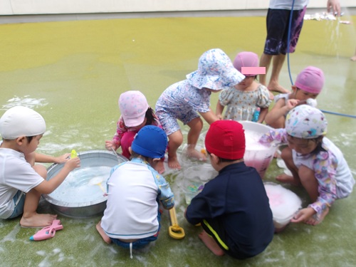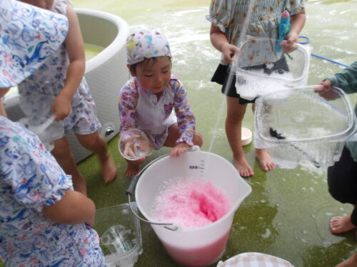 うさぎ組さんは泡入りの色水つくりに盛り上がっていました✨✨
