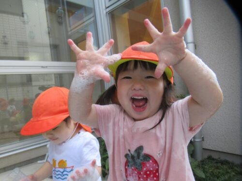 あわあわが手についた!! 見て見てー👐
