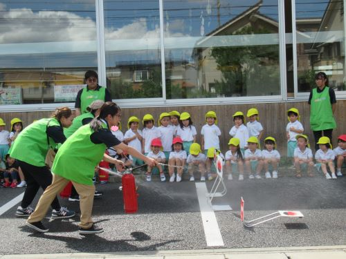 消火器の中には消火する粉が入っていて火を消してくれるんだよ!!と教えてくれるお友だちもいましたよ😍